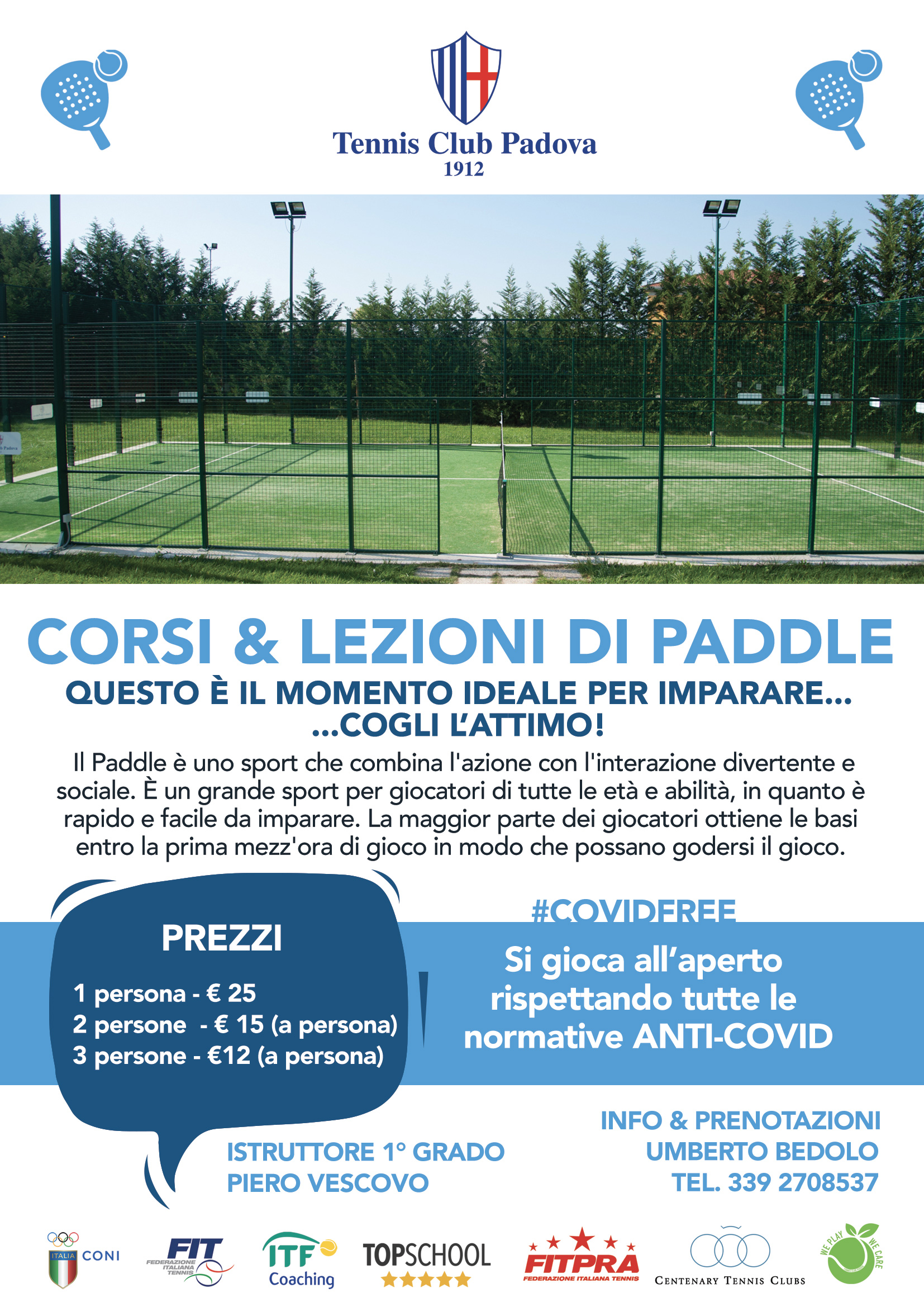 Il tc Padova organizza Corsi e Lezioni di Paddle!
